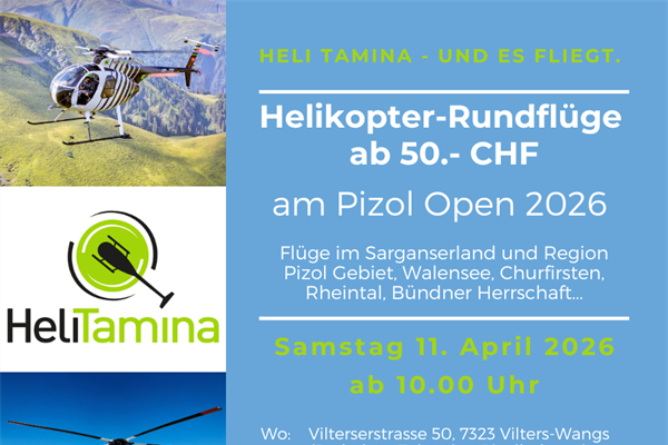 Schenken Sie Ihren Liebsten ein Erlebnis! Suchen Sie noch ein besonderes Geschenk für Ihre Liebsten? Mit einem Gutschein der Heli Tamina schenken Sie den Traum vom Fliegen... Weiter