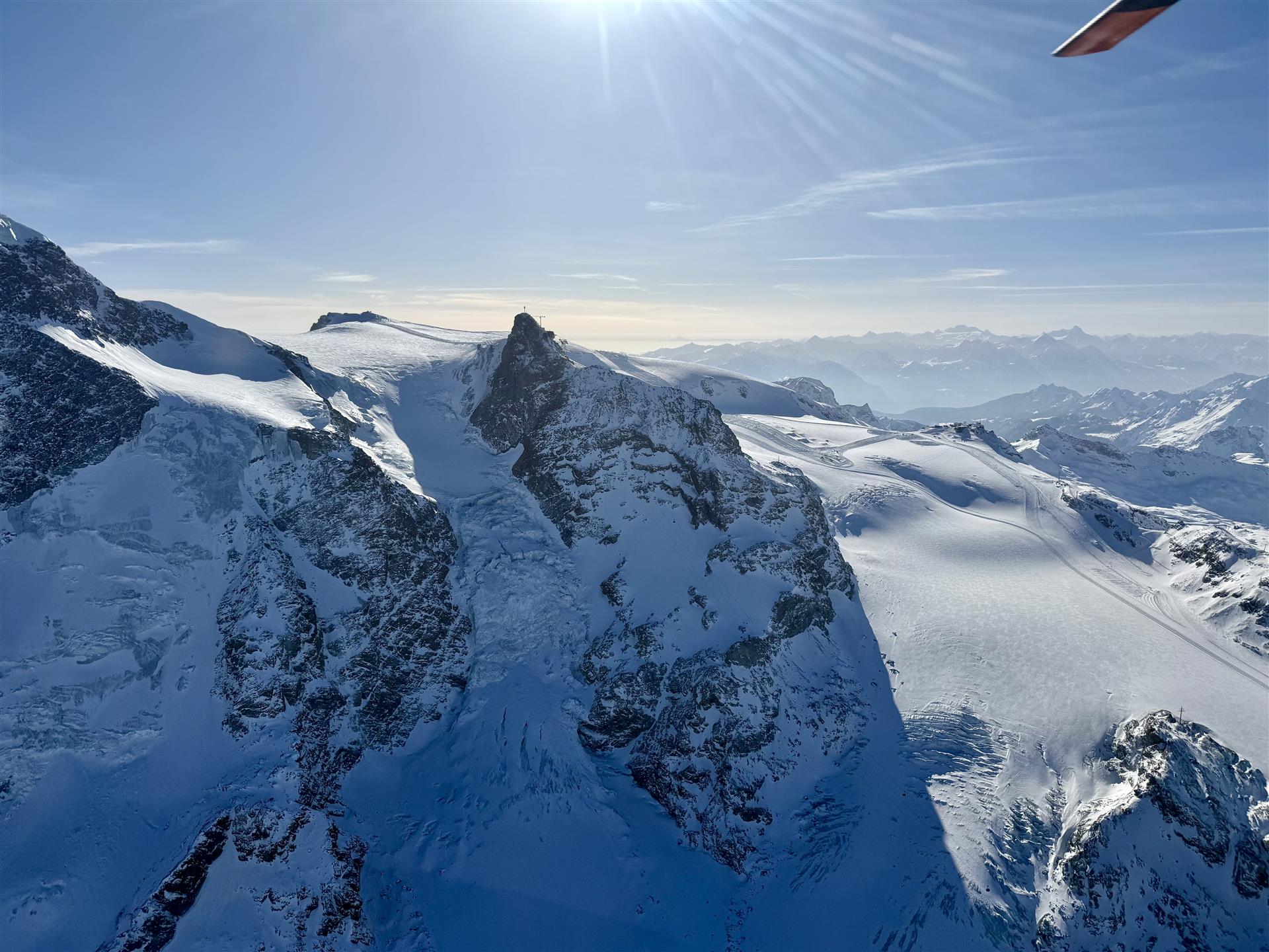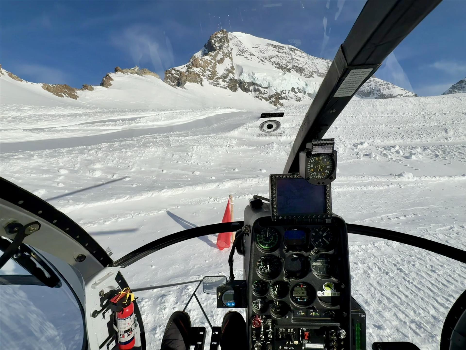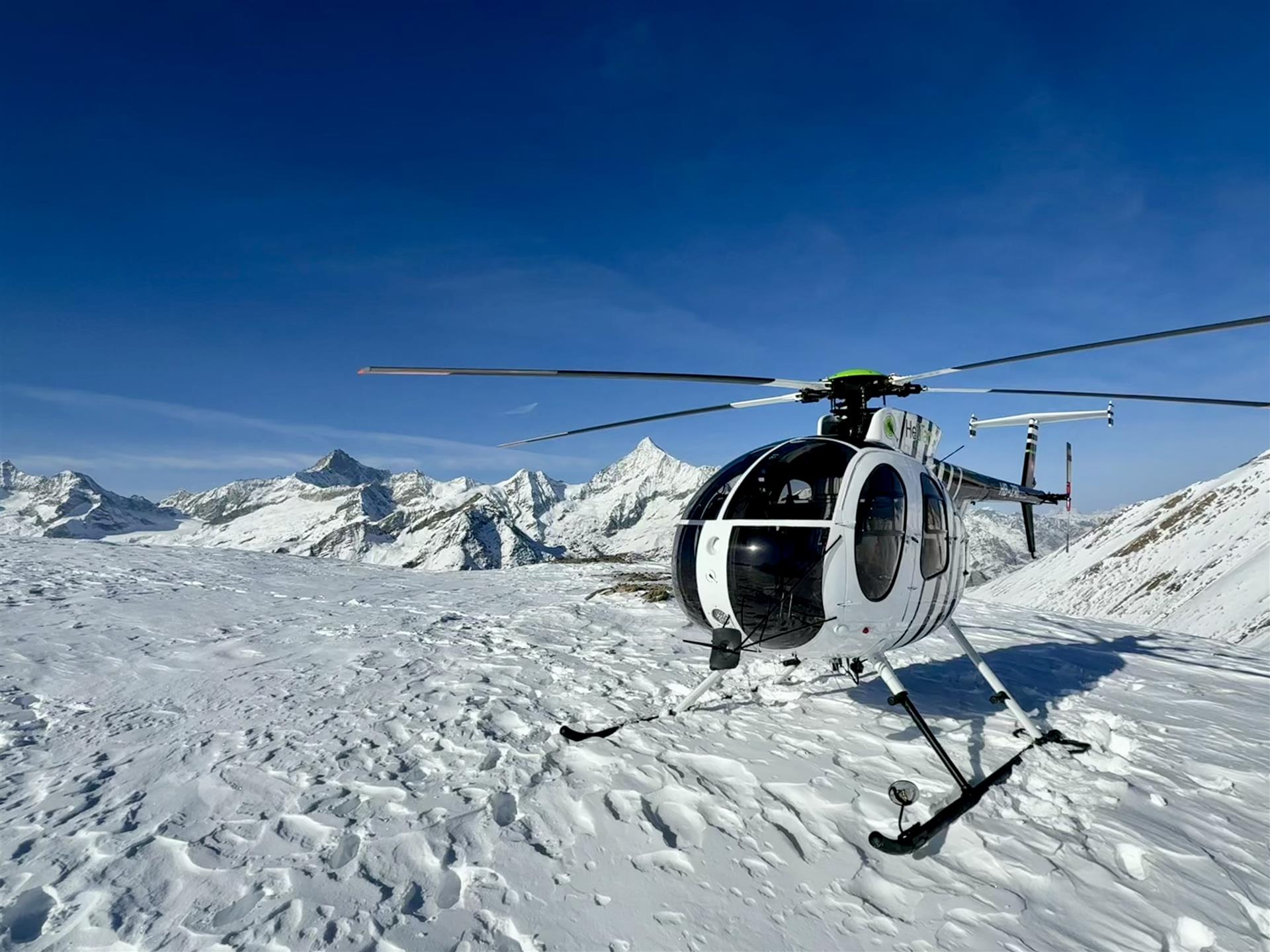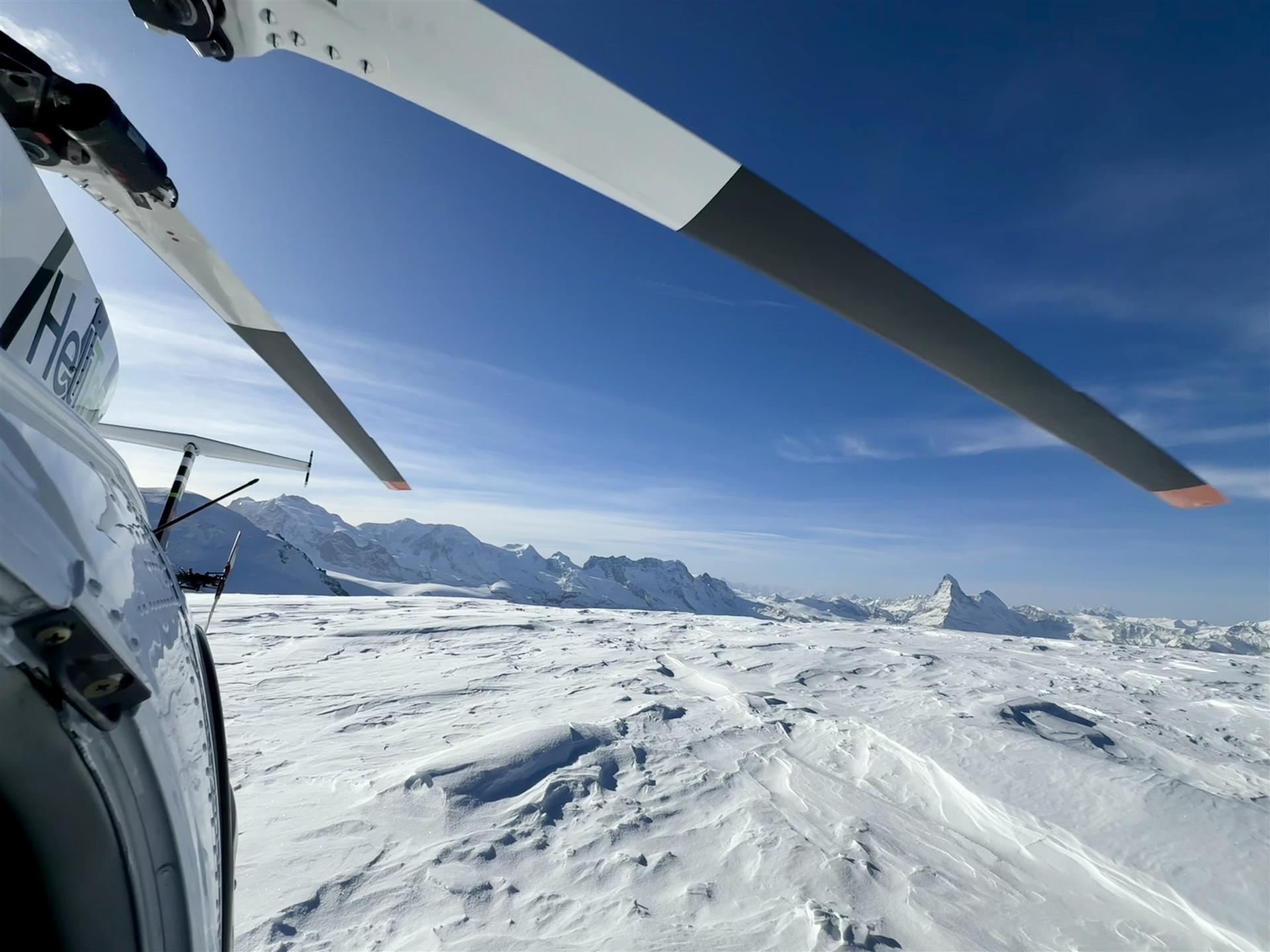 Wenn uns die Passagiere jeweils nach unserem persönlichen Rundflughighlight fragen, können wir das zusammengefasst mit einem Flug beantworten: dem Flug zum "Horu". Dieses 120 Minuten-Rundflug-Angebot der Heli Tamina beinhaltet nämlich ein magisches Spektakel nach dem anderen, ein Flug der Superlativen... Nach unserem Start in Mollis, fliegen wir am Klöntalersee entlang, am Titlis, Furkapass, Finsteraarhorn (4274 müM) und Weisshorn (4505 müM) vorbei, zum Matterhorn (4478 müM). Danach landen wir auf 3100 müM und geniessen eine köstliche Pizza im Bergrestaurant Rothorn, hoch über Zermatt. Mit einer unglaublichen Aussicht auf das "Horu" und die Zermatter Bergwelt, mit ihren vielen 4000er, wird dieser Zwischenhalt zum unvergesslichen Erlebnis. Auch der Retour-Flug bietet faszinierende Impressionen: Schon 5 Minuten nach dem Start auf dem Unterrothorn landen wir auf dem "Hochplateau" Alphubel (3850 müM) und sind hier mit dem Matterhorn fast auf Augenhöhe... Sogar eine Landung auf dem höchsten Gebirgslandeplatz der Schweiz ist möglich: Monte Rosa (4100 müM, am Fusse der Dufourspitze, höchster Gipfel der CH). Weiter gehts auf dem Luftweg in Richtung Berner Oberland, dem Grossen Aletschgletscher entlang, am Konkordiaplatz vorbei, zum Jungfraujoch (3500 müM). Nun folgt das Steingletscher-Gebiet in den Zentralalpen sowie die Gletscherwelten rund um den Tödi, mit der Planurahütte SAC (2947 müM).